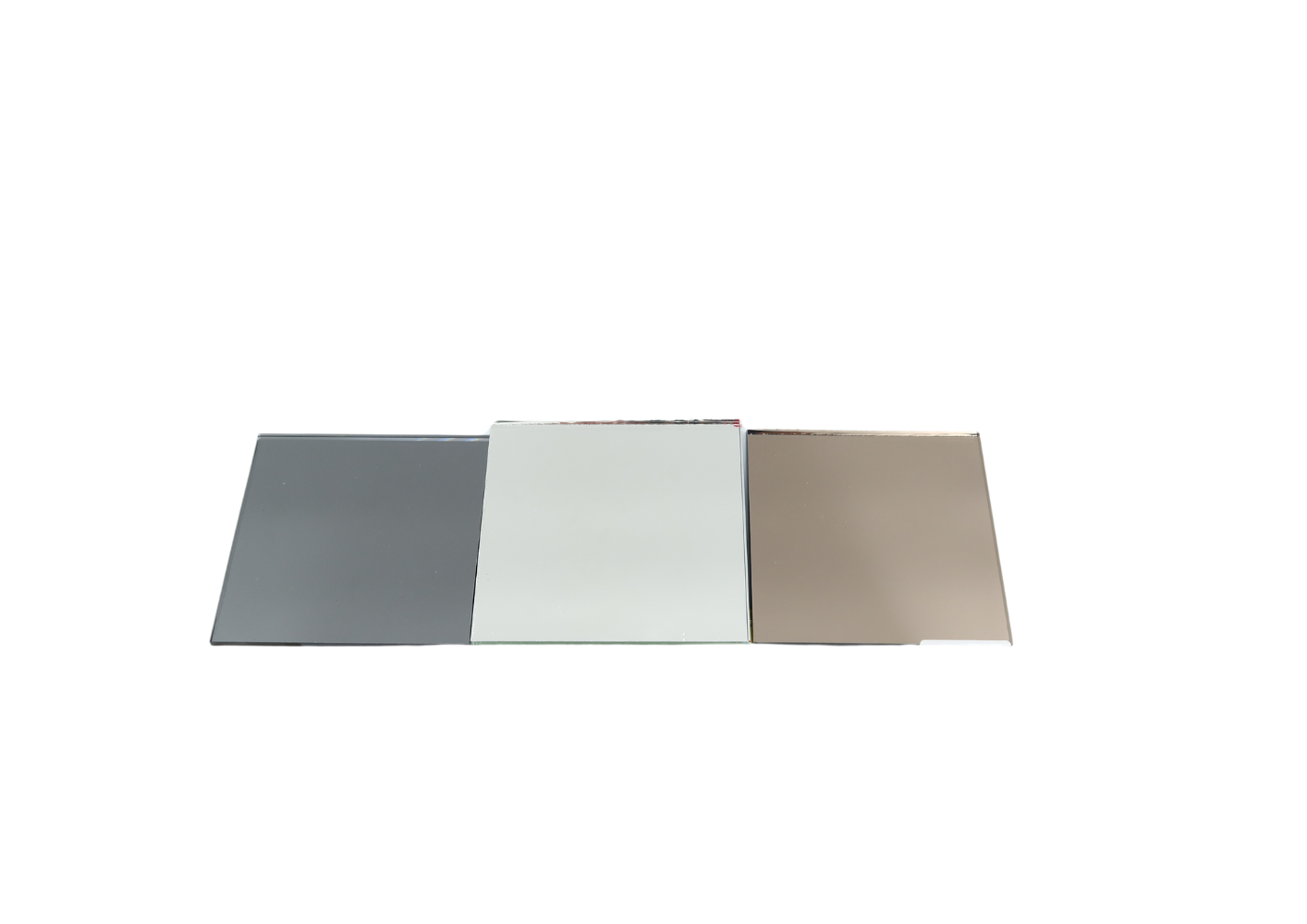 In de meeste gevallen is standaard verzilverd blank spiegelglas wenselijk. We bieden echter ook de mogelijkheid om voor verzilverd brons of verzilverd smoke grijs spiegelglas te kiezen. Gekleurd spiegelglas geeft je hoge spiegel een unieke uitstraling! Hou er wel rekening mee dat de reflectie iets donkerder is dan bij ‘normaal’ spiegelglas. Als je twijfelt of een gekleurde spiegel geschikt is voor jouw toepassing, dan kun je eventueel eerst een aantal samples voor gekleurde spiegels bestellen.