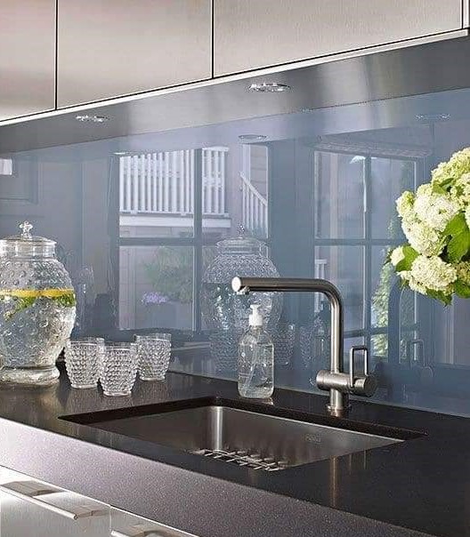 Iets anders dan tegels aan de wand? Kies dan voor een keukenachterwand van gekleurd gelakt glas. Het geharde, extra heldere glas is sterk, hitte bestendig en eenvoudig schoon te maken. Naast het doorzichtige geharde glas is er de mogelijkheid om het glasoppervlak te lakken in iedere gewenste RAL-kleur.