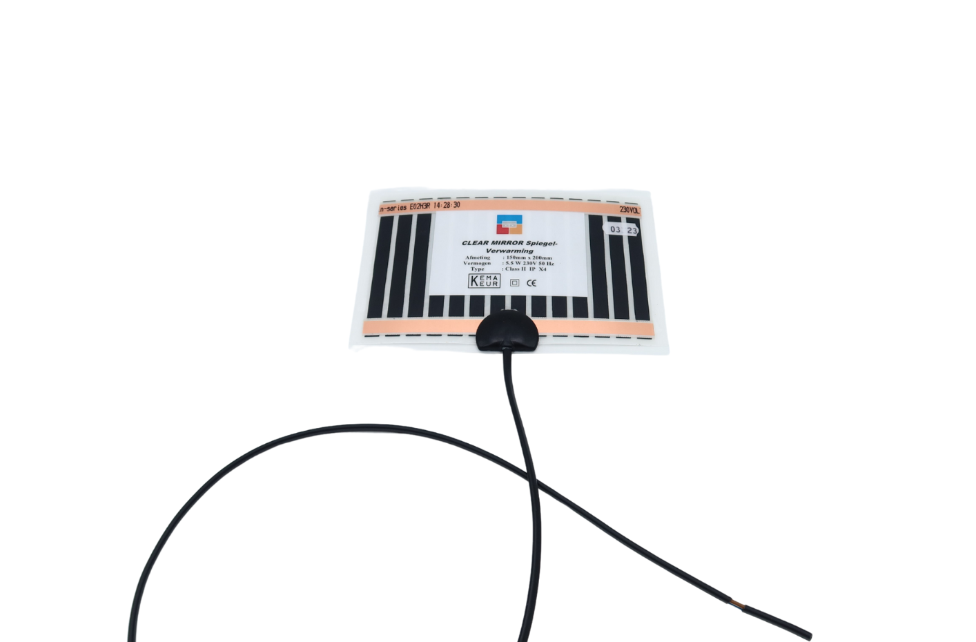 – Dit element is een verwarmde elektrische weerstand die aan de achterzijde van de spiegel wordt bevestigd, waardoor het glas snel opwarmt.