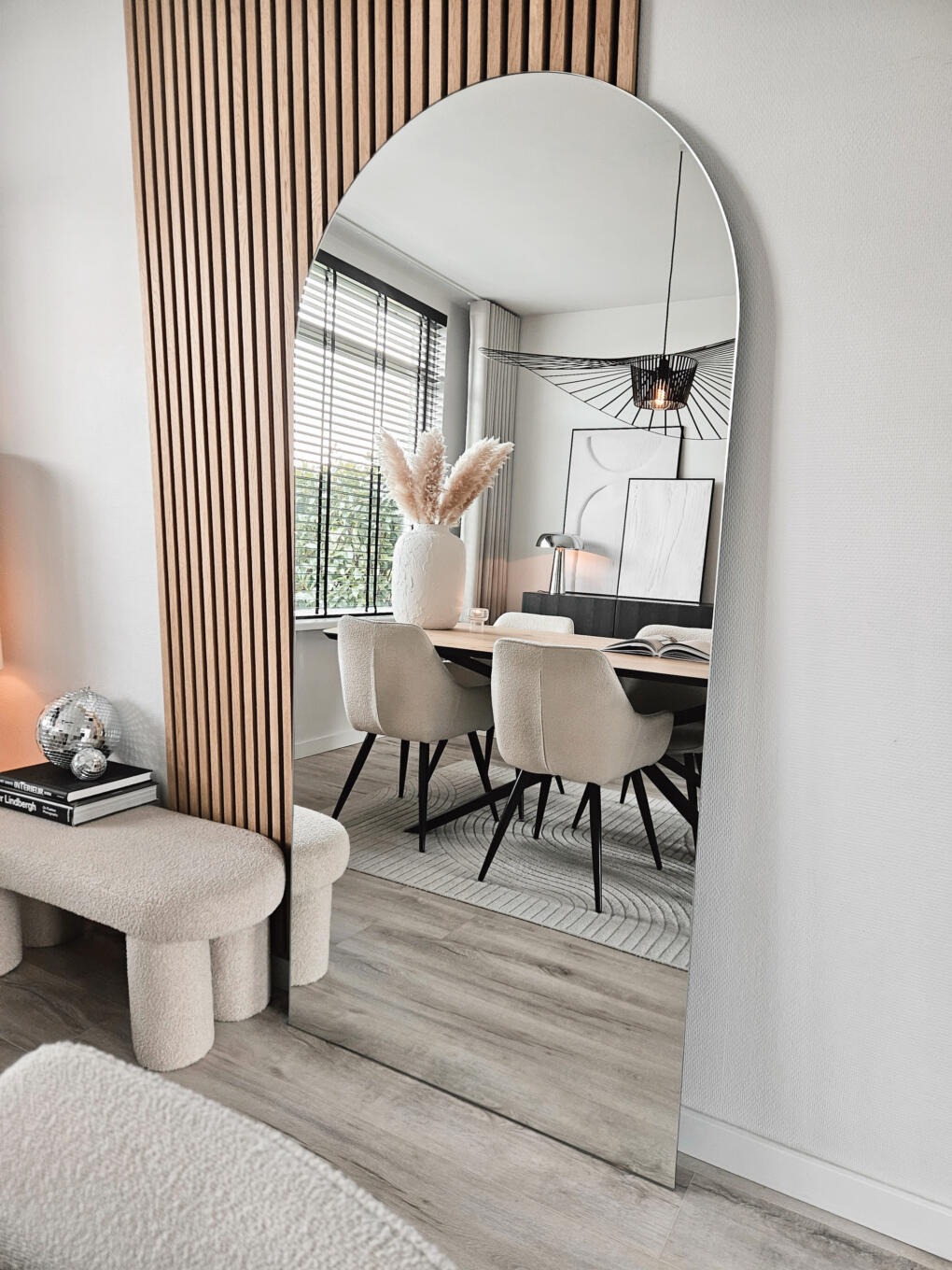 Een woonkamerspiegel is veel meer dan ‘slechts’ een spiegel in de woonkamer. Het is echt een meerwaarde met betrekking tot de inrichting van deze ruimte. Door een spiegel in je woonkamer te plaatsen, laat je je woonkamer groter lijken en creëer je meer licht. Hierdoor straalt je woonkamer een open en uitnodigende sfeer uit. Spiegels reflecteren natuurlijk licht en kunstlicht, waardoor ook de donkere hoeken van je woonkamer profiteren van de spiegel woonkamer. En wist je dat een woonkamer spiegel een kamer ‘levendiger’ maakt doordat een spiegel diepte toevoegt aan een ruimte? Dit maakt een spiegel woonkamer een uitstekende keuze voor kleine én grote woonkamers.